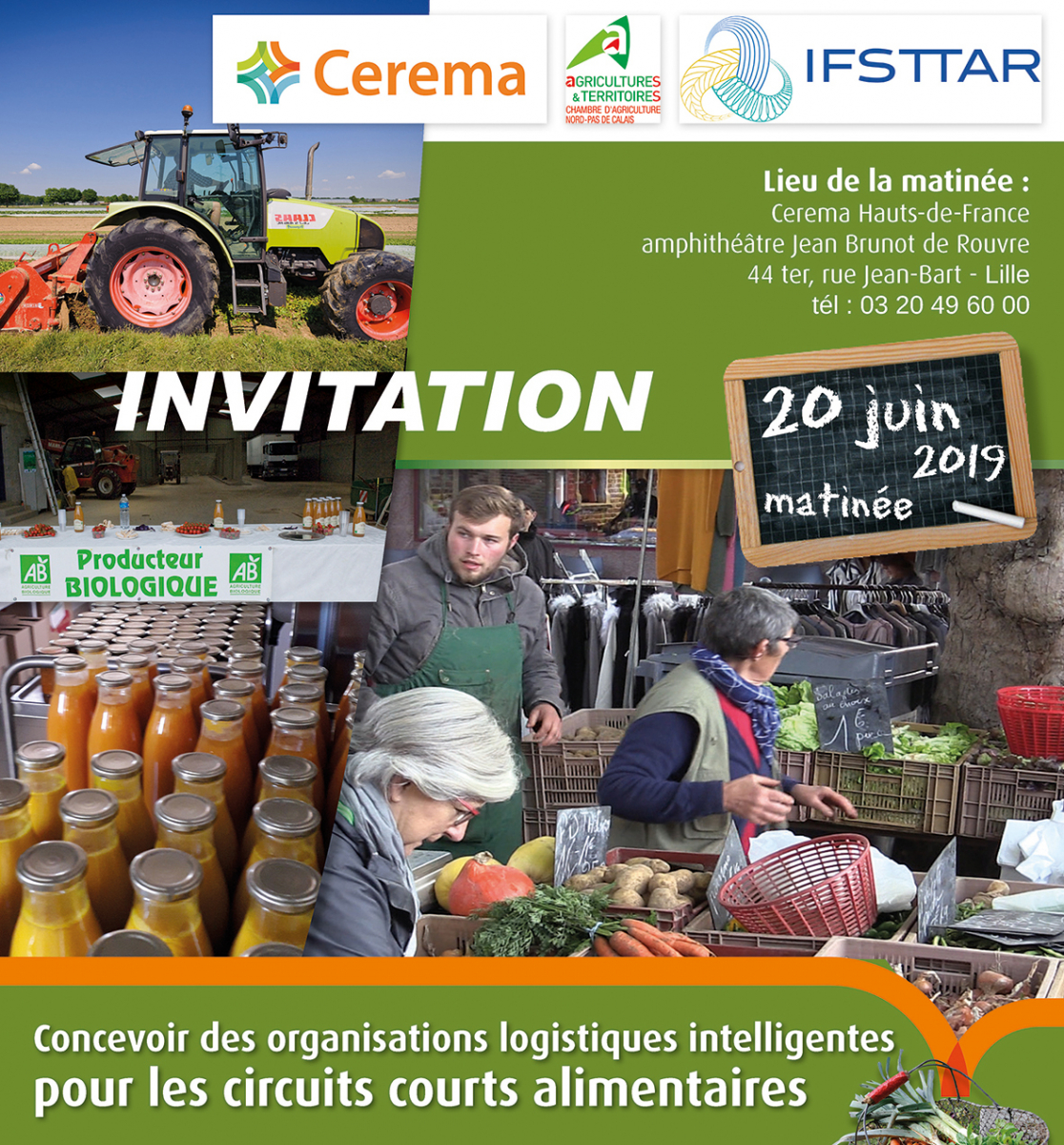 Dans cette optique, le Cerema, l’IFSTTAR et le Comité de promotion de la Chambre d’Agriculture du Nord - Pas de Calais organisent un séminaire de restitution des résultats de leur Recherche-Action « COLCICCA », financée par la Région Hauts-de-France. Celle-ci porte sur l’accompagnement de producteurs pour l’amélioration de leur organisation logistique en circuit court.