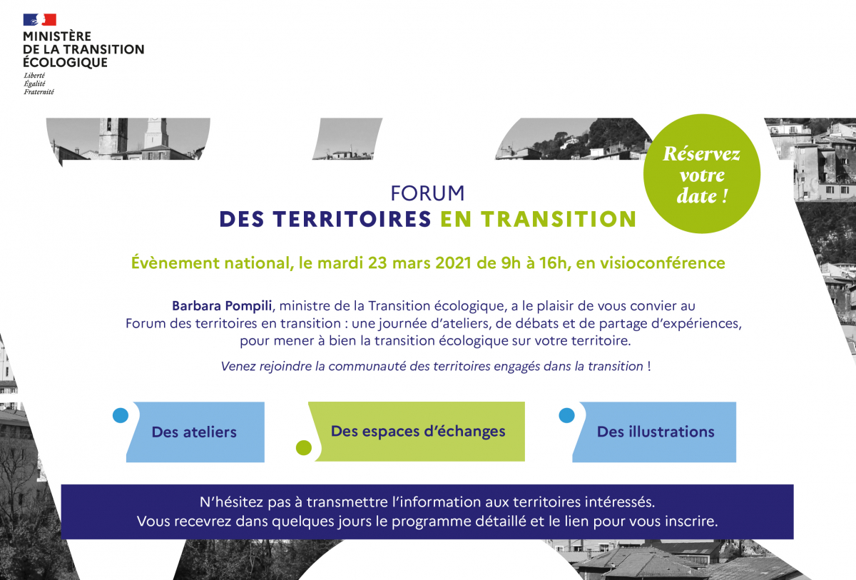 Évènement du Ministère de la Transition écologique, le Forum des territoires en transition se déroulera le 23 mars 2021 en visioconférences.