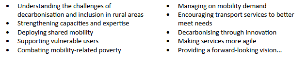 In these sparsely populated areas, there is a pressing need to offer more transport solutions – including, in some cases, cars – to certain groups of people who are forced to remain immobile, in the interests of social and territorial inclusion. There is also a need to roll out large-scale carbon-free solutions in these areas, which are far from major urban centres and their amenities.