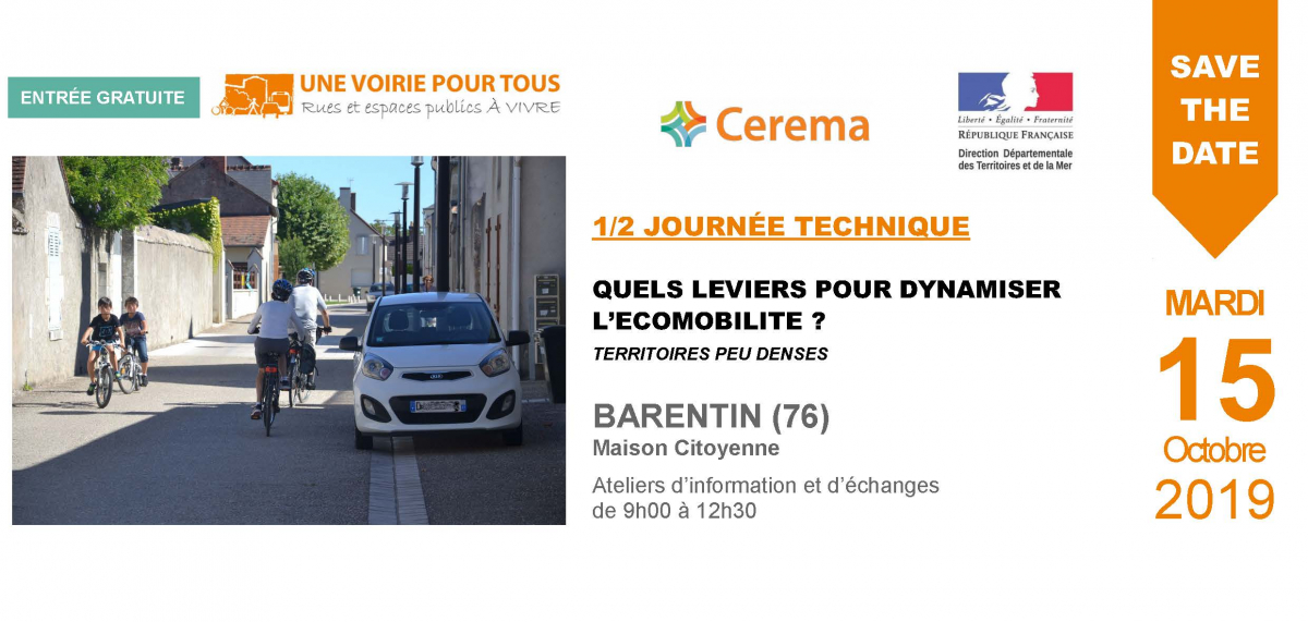 Le Cerema et la DDTM de Seine-Maritime vous proposent une 1/2 journée technique autour du thème l’écomobilité dans les territoires peu denses le 15 octobre 2019 à Barentin (76).