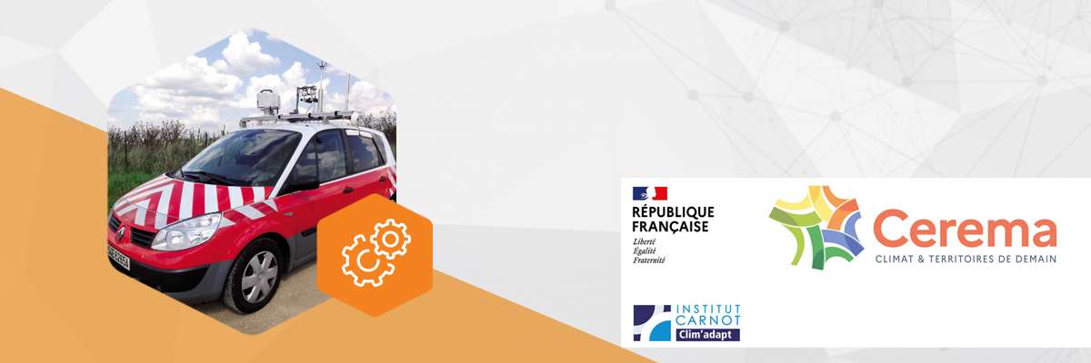 - Véhicule de mesures mobile : il peut être déployé sur tout le territoire pour des relevés de température d’air, d’hygrométrie, de flux solaires et infrarouges et de concentration de gaz à effets de serre. En fonction du besoin, ces données peuvent être traitées, soit en analysant un profil de mesure, soit en appliquant une méthode permettant de cartographier toute une zone d’étude par interpolation.