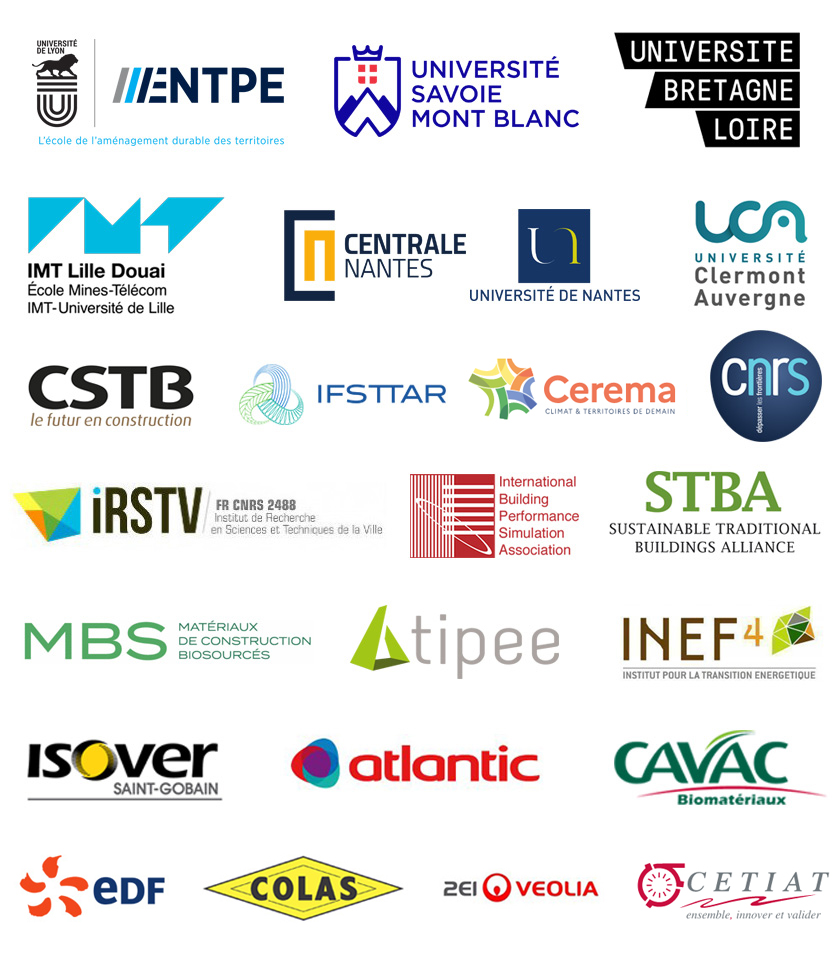 - Associations GDR FR Plateformes technologiques : Institut de Recherche en Sciences et Techniques de la Ville & GDR en cours de montage sur la modélisation des transferts dans le bâtiment (coord. M. Woloszyn), association IBPSA, STBA (Sustainable Traditional Buildings Alliance), GDR MBS (Matériaux de construction BioSourcés - coord. S. Amziane, C. Lanos & S. Marceau).Tipee, INEF4.