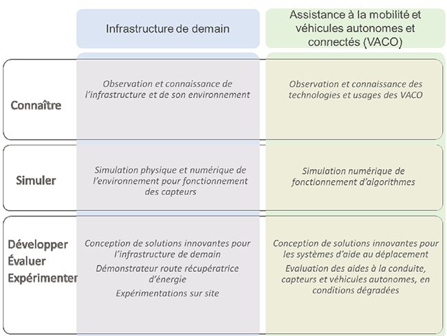 • le développement d’outils expérimentaux et de modélisation des nouveaux services apportés par l’infrastructure de transport, tant sur le plan énergétique que sur le plan digital ;