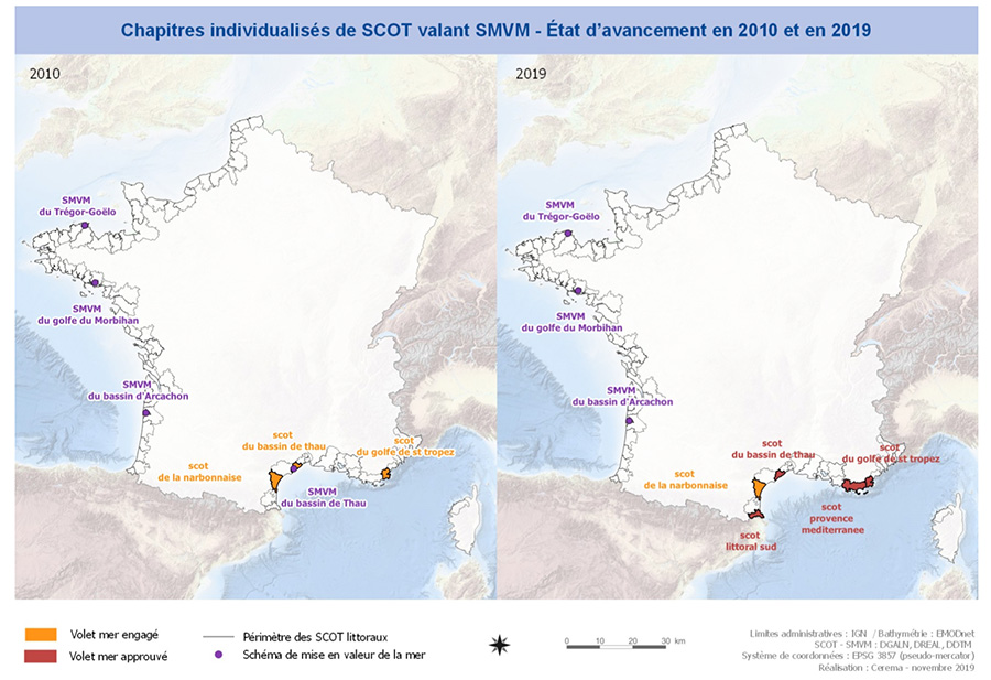 - L’identification des collectivités dont le Schéma de cohérence territoriale (SCoT) dispose d’un chapitre individualisé valant Schéma de mise en valeur de la mer (SMVM).