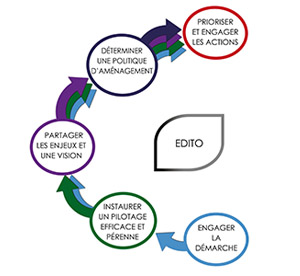 Le Cerema a donc proposé un guide interactif au graphisme original (un arc et une roue), permettant d'accéder à des fiches opérationnelles, illustrées d'exemples concrets. C'est un guide évolutif, actualisable dont les techniciens, les élus et les institutionnels peuvent se saisir pour faire partager leurs expériences