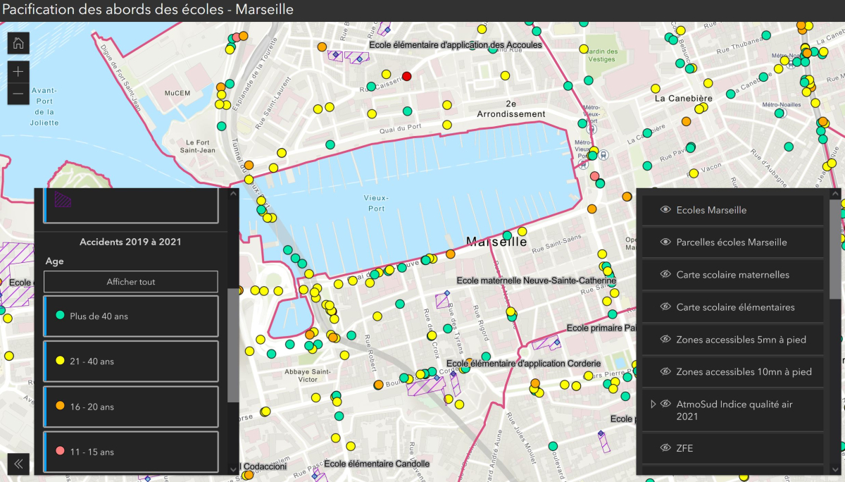 La ville de Marseille a pour objectif général de pacifier les abords des écoles, pour améliorer la sécurité des déplacements scolaires, sensibiliser à la pratique des mobilités actives, atténuer les conflits d’usage de la voirie au sein des quartiers.